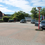 Ein großer Parkplatz mit wenigen Autos. Ein Commodore-Aufkleber zeugt vom richtigen Ort ;-).